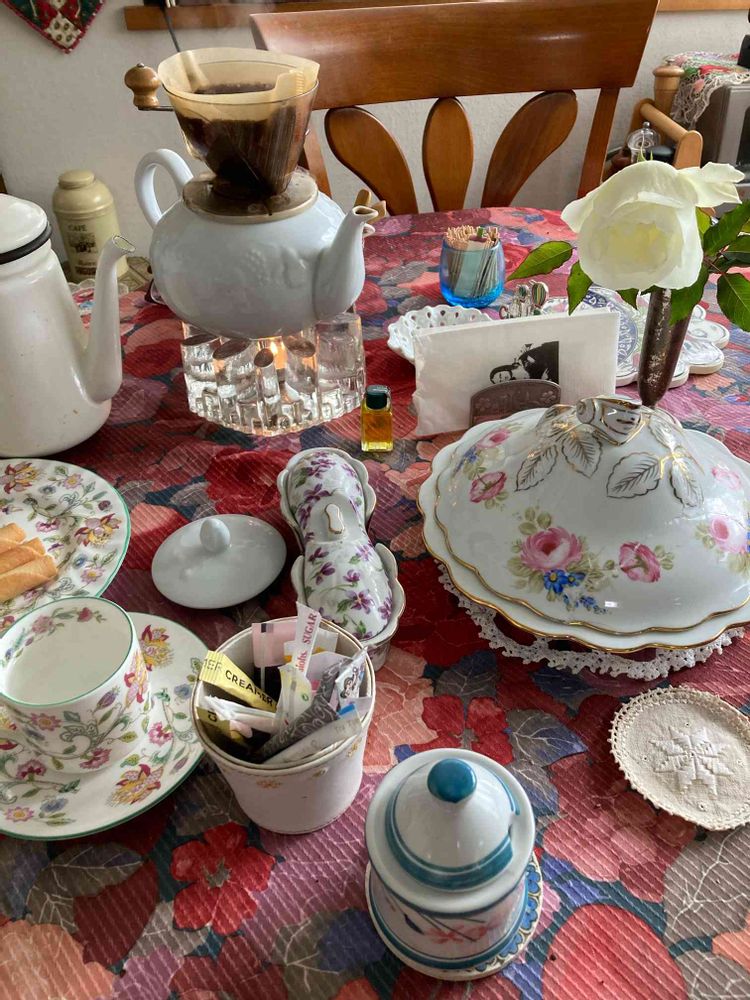 前にも投稿した友人宅のテーブルアレンジです‼️いつ行ってもとっても素敵でついつい皆さんに見せたくなってしまいます❣️食器は花柄だし😁