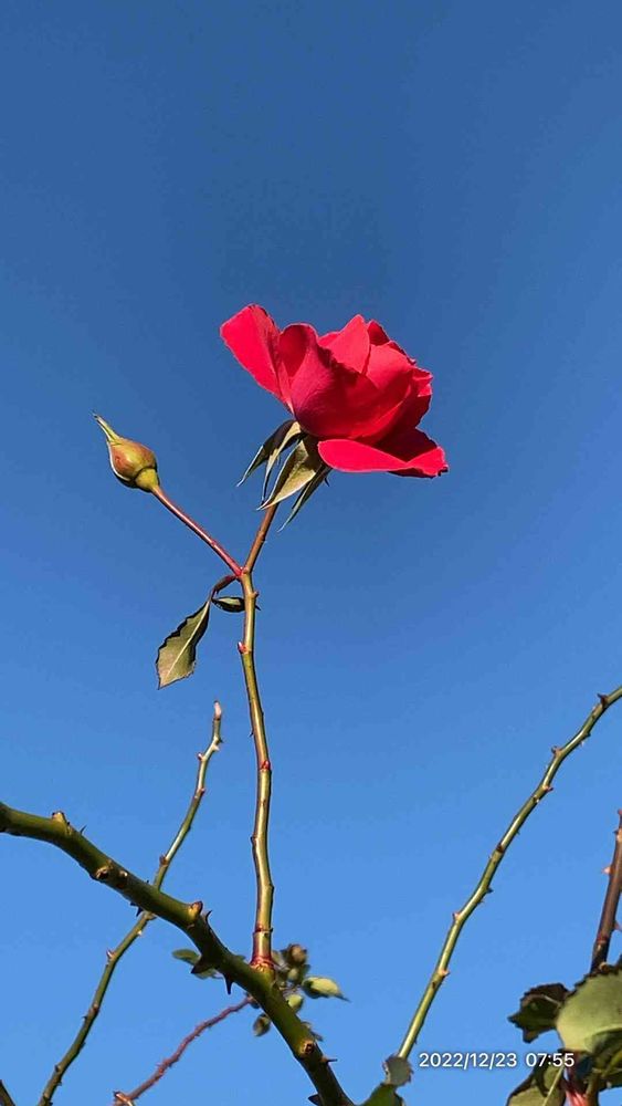 紺碧の空に真紅の薔薇。言うことなしですねぇ🤩🥰