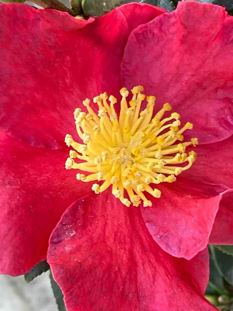 真っ赤な山茶花、シベも素敵ですね🤗🙂😀