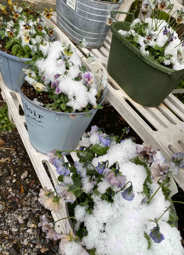 雪、風にも負けなず寒い中で咲くビオラってかわいい、綺麗、魅力的だけじゃないないですね❣️