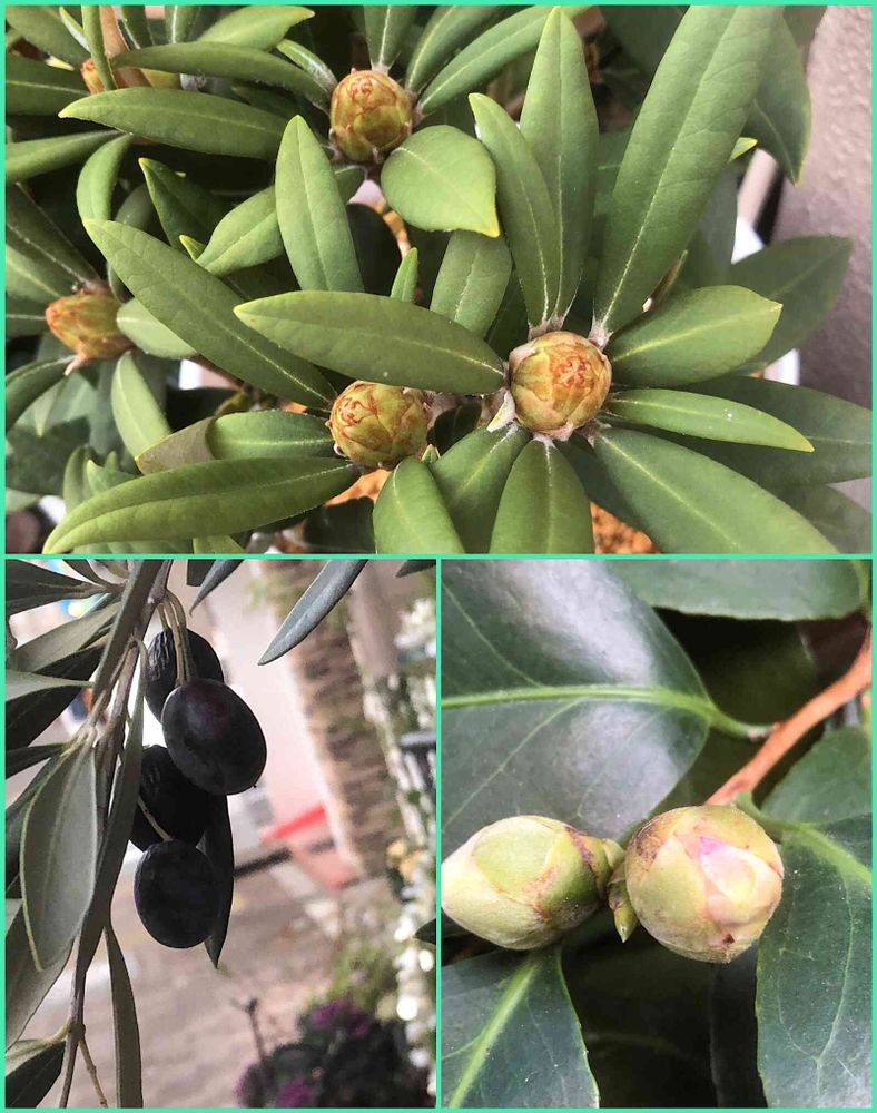 小さな庭,オリーブの実,シャクナゲの蕾の投稿画像