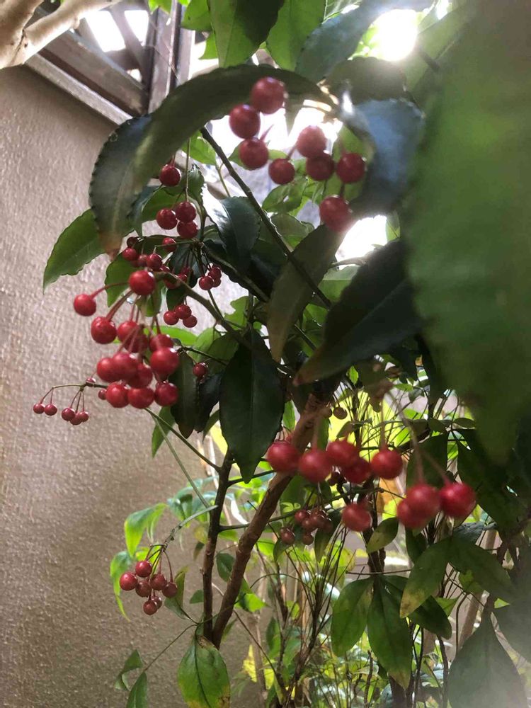 万両がたわわに咲いていました