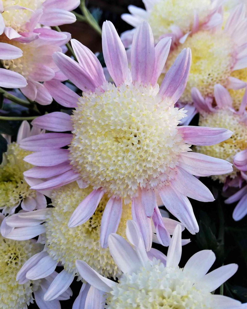 丁字咲きの薄ピンクの花弁のキクの花 2022-12-18