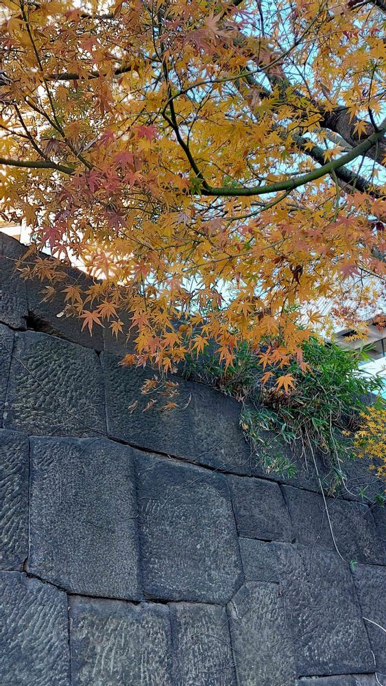 ~紅葉と牛込門跡/「阿波守内」銘の石垣~です