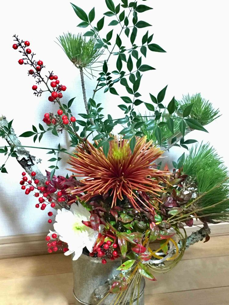 お正月の我流なんちゃって生花はしてたんだけど アレンジだと 飾る場所を選ばないって感じでいいよ😃💕