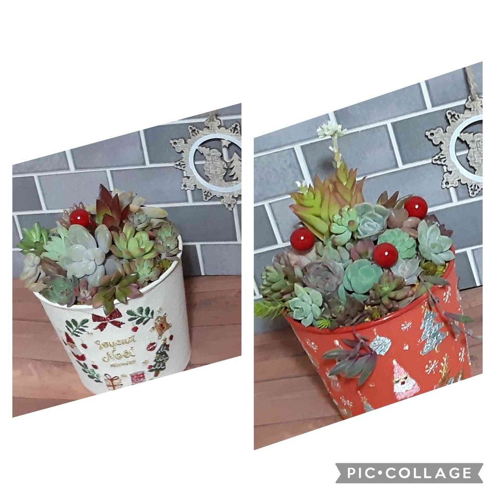 多肉ちゃんも多肉愛さんのリメ缶も可愛い💖クリスマスにぴったりですね🥰💕