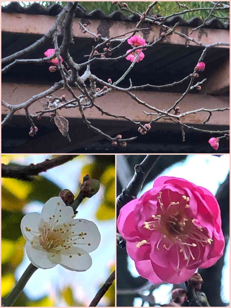 ピンクの唐梅、白の竜峡小梅が