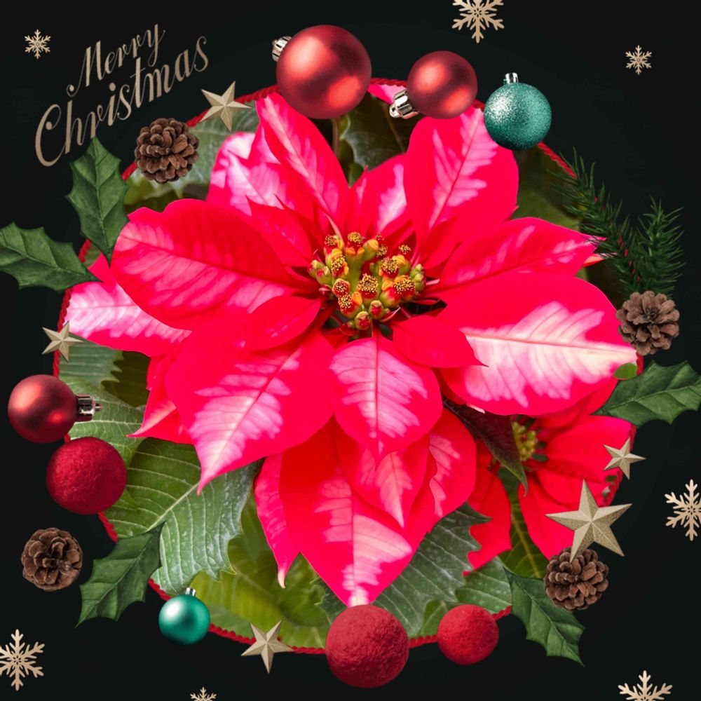 ポインセチアがより華やかに引き立つコラージュ、とってもステキですね❤️💚💙