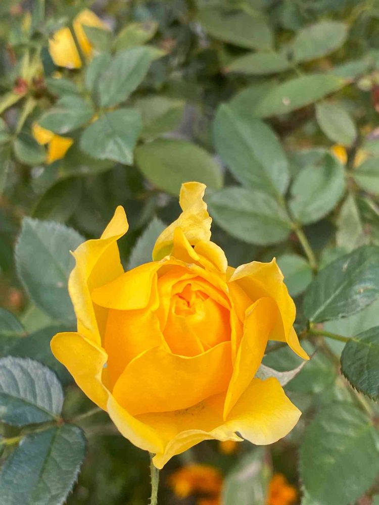 黄色の薔薇が陽だまりに。