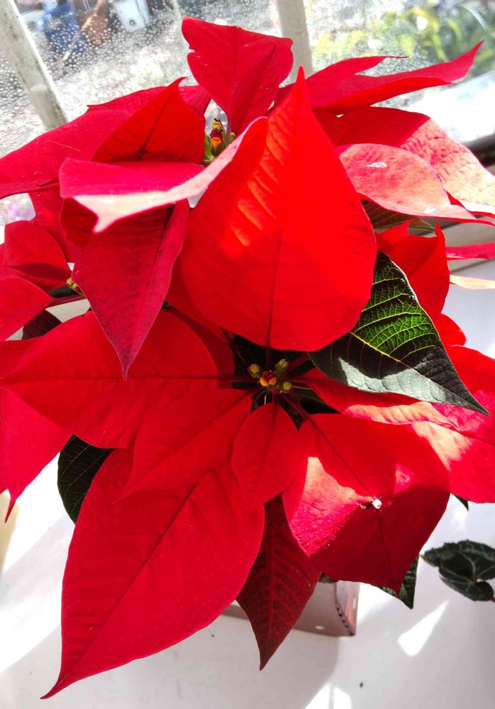 先程と同じポインセチアですが、日が当たってる時はまたちょっと表情が違いますね❣️💕