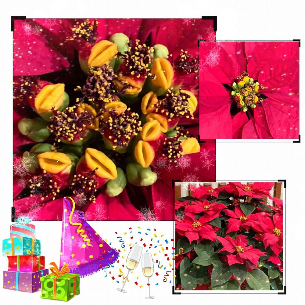 大きくして見たら これがお花で蕾なのかなぁ?って 不思議な形をしたポインセチアですね❤️
