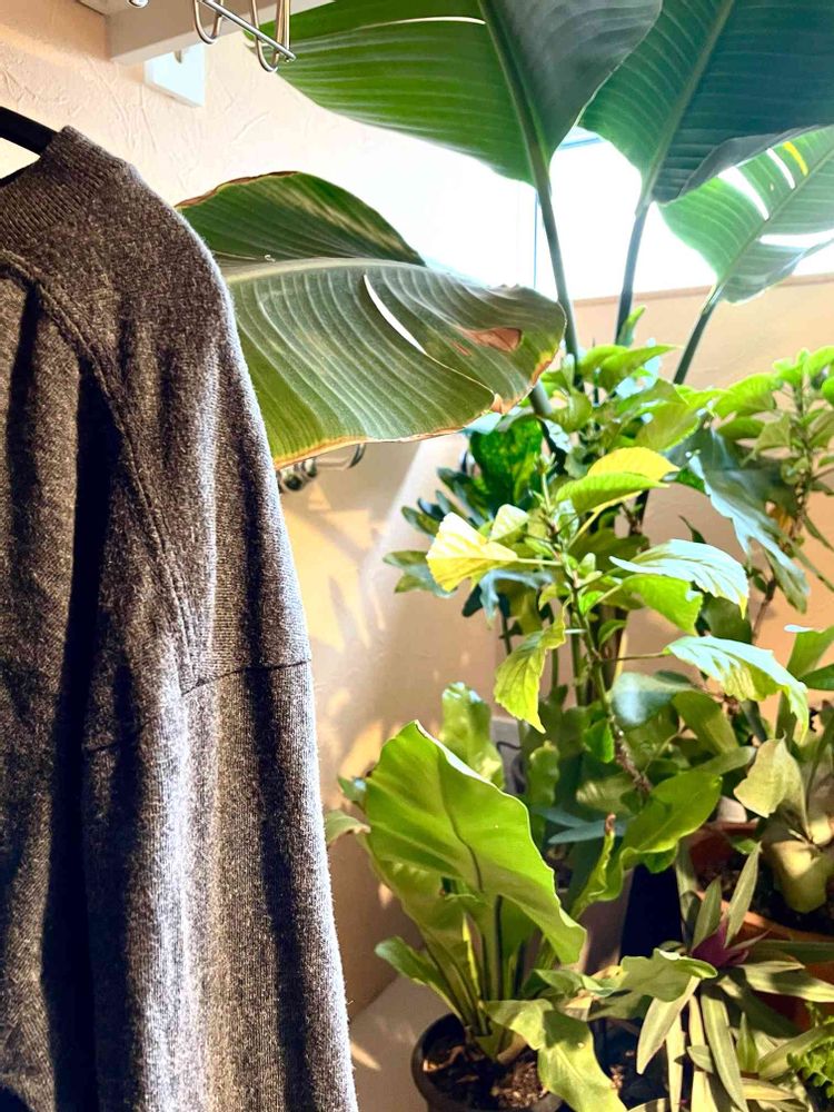 ストレリチアの葉っぱが部屋干しの邪魔をする。