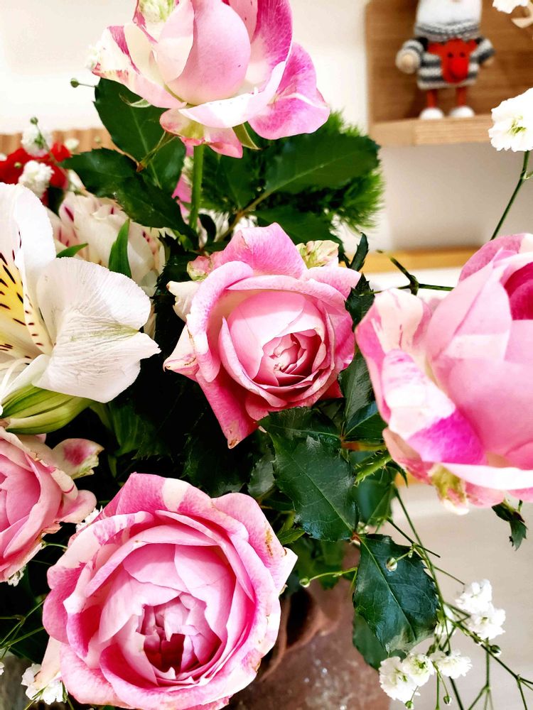 娘が頂いてきた💐花束のなかの薔薇が超綺麗‼️しかし名が解りません😅