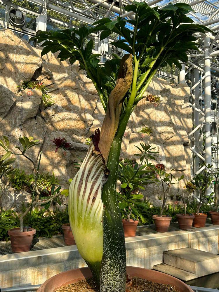 ショクダイオオコンニャクが12/19に開花とのこと😊 葉と花が同時に出たのは世界で2例目。