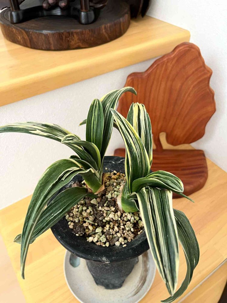 今年は娑羅系の万年青が一株増え葉芸がキレイになりました。