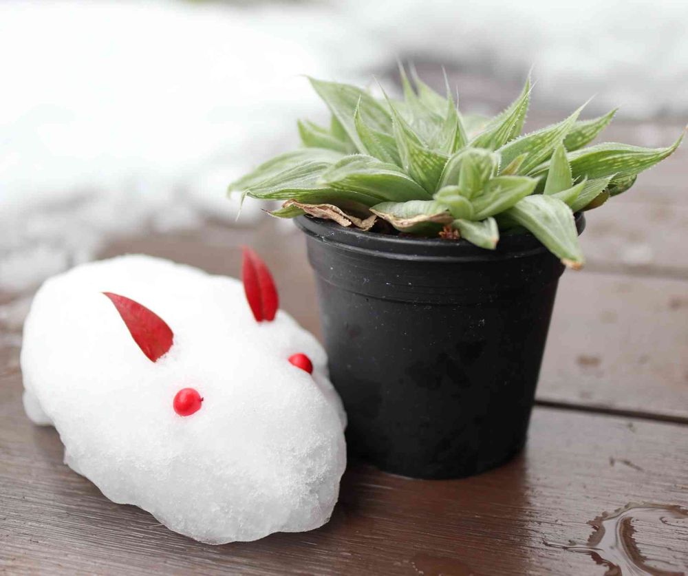 浮かれて作った雪うさぎとハオルチア祝宴錦で🏷️錦の日、に参加します。💃