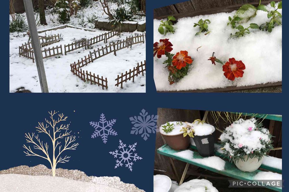 小さな庭,雪景色,可愛いお花♡の投稿画像