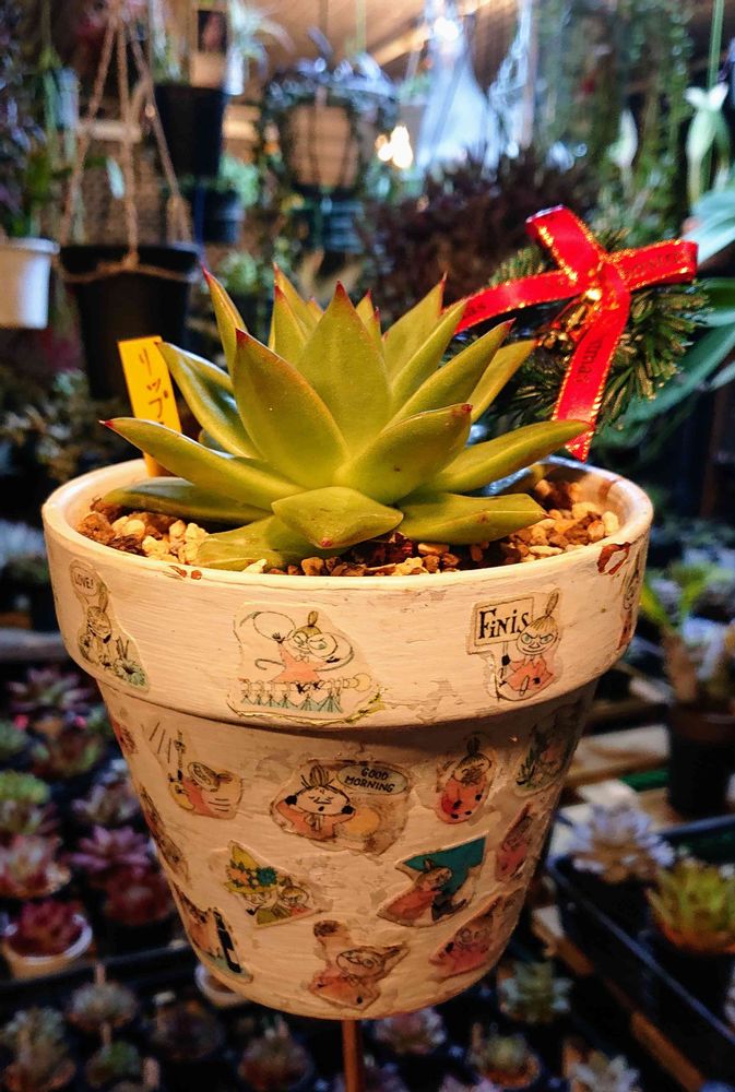 ケーキのリースを刺して記念撮影📷️この鉢の二代目、リップスティック💄さん🙆