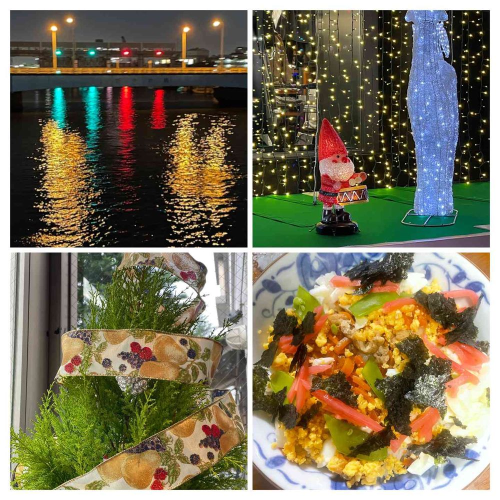 左上は何かというと、近所の川の水門の灯りです。ちょっとクリスマスカラーっぽかったので❤️💚