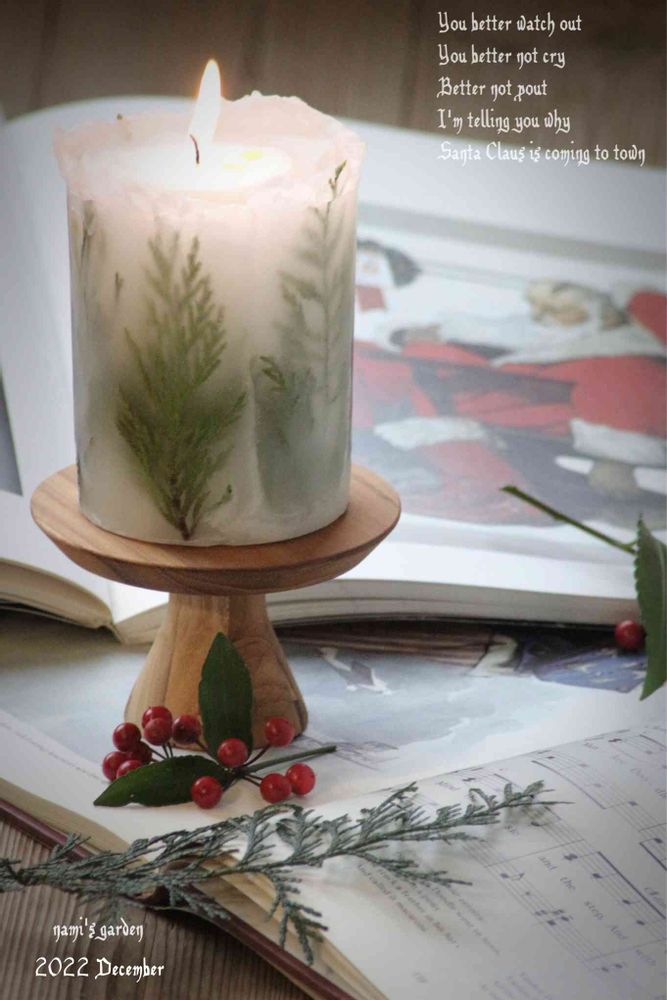 クリスマス🎄オーナメント材料 最後のコニファー🌿を使用して作成したボタニカルキャンドル🕯✨