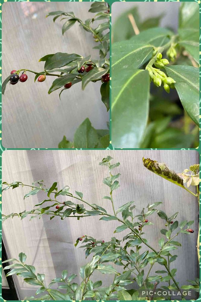 サルココッカ 色付いた実が目立ってきて緑の実の時は分からなかったのに、けっこう実が成っているのに気づきました。