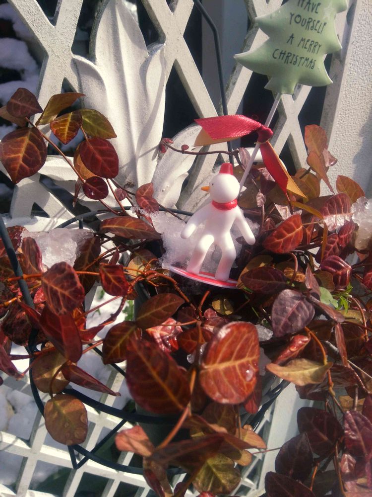 名古屋初雪となった昨日、、、門扉に掛けたハツユキカズラはチョコレートみたいな色になっています