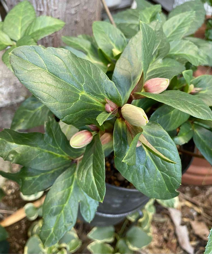 今年、小さな株を買ってみました。来年には咲きますか?いまは、屋根の下で寒さに耐えています😂