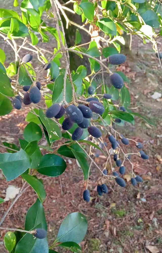 ・果実は楕円形で、潰すと指が紫黒色に染まる