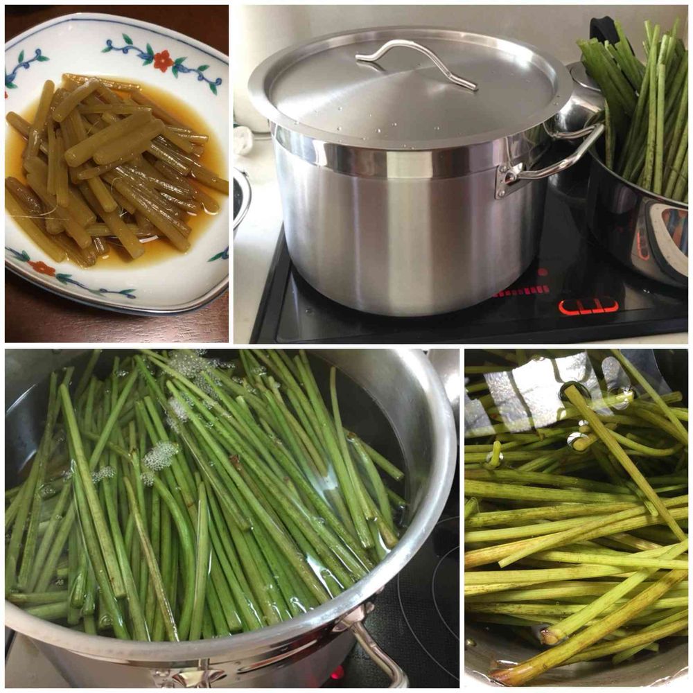 アク抜きの下茹で後の皮むき立ちっぱなしで疲れましたが美味しく食べるためですよね💕