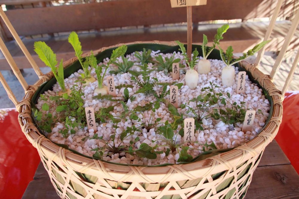 春の七草を籠に仕立てたもので、向島百花園では毎年皇室にも献上しています。