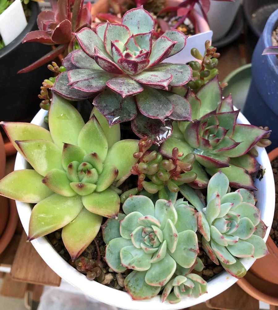 先日シマムラ園芸さんからゲットしてきたエケベリアの寄せ植えですが、今日現在でこんな調子です。