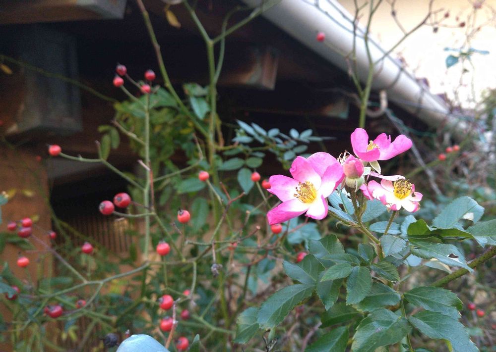飲み飽きたから、玄関のツルバラ、バレリーナの誘引してみました。