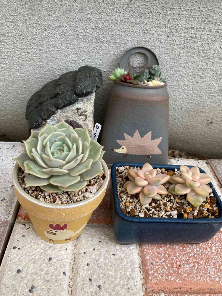 たかこさんから頂いたローラとティチュバンス錦とモモンガさんの鉢も頂いたので最強コンビのコラボです⋆⸜🧡⸝⋆