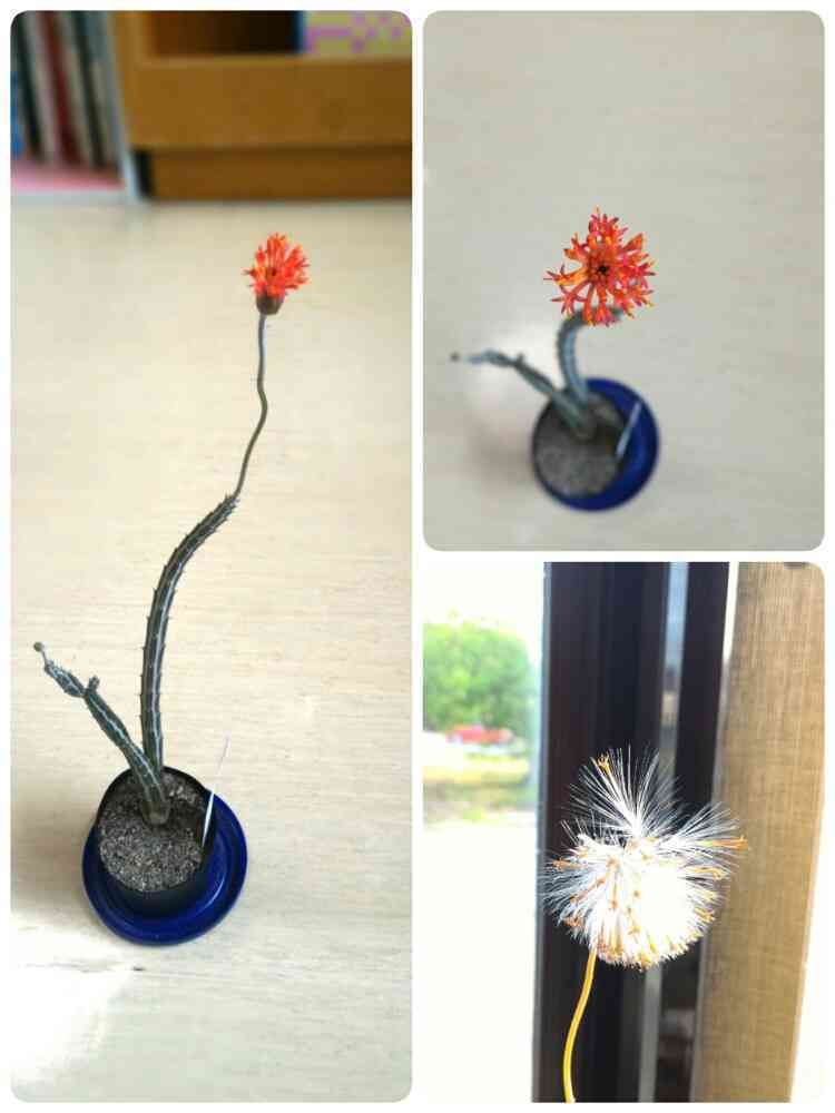 小さい方の子の花芽は咲かずに枯れました(*_*)種?の方は今日触ったらモコモコとたんぽぽのように取れたので今度蒔いてみようと思います(*•̀ᴗ•́*)و ̑̑