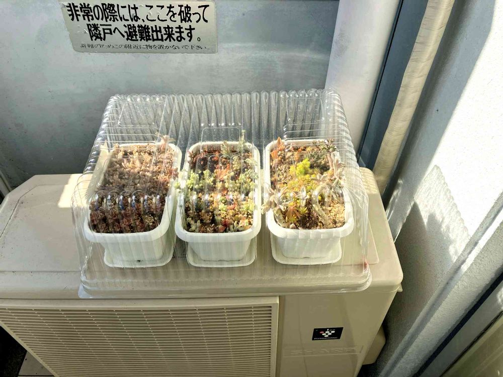 スチールラックに被せる、簡易ビニルハウスも持ってますが、早朝冷えるのに、昼間暑すぎで蒸れるしで、管理が大変なんですが、