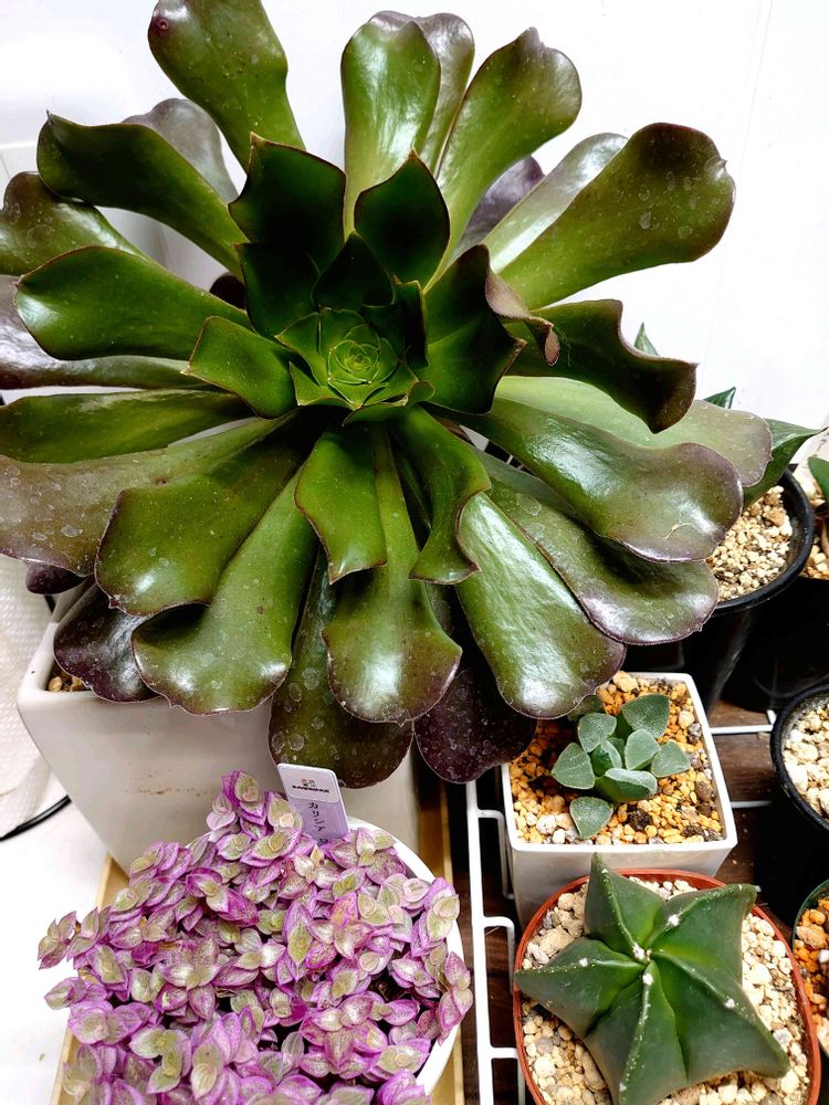 アエオニウムをキッチンに避難させました。良い置き場所が他になくて💧