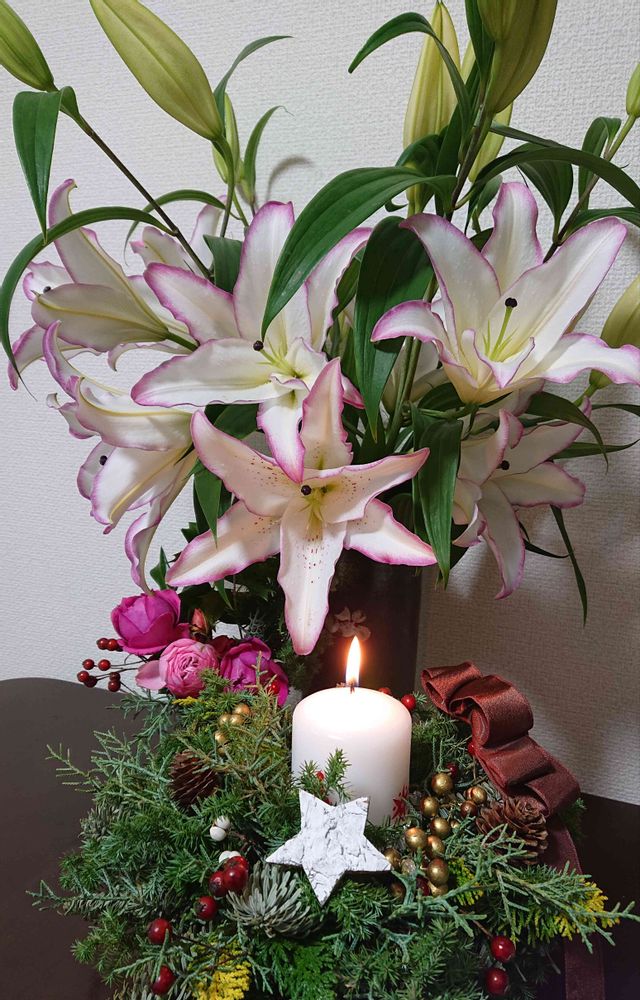 素敵なクリスマス🎄アレンジメントに🕯火が灯りましたね✨