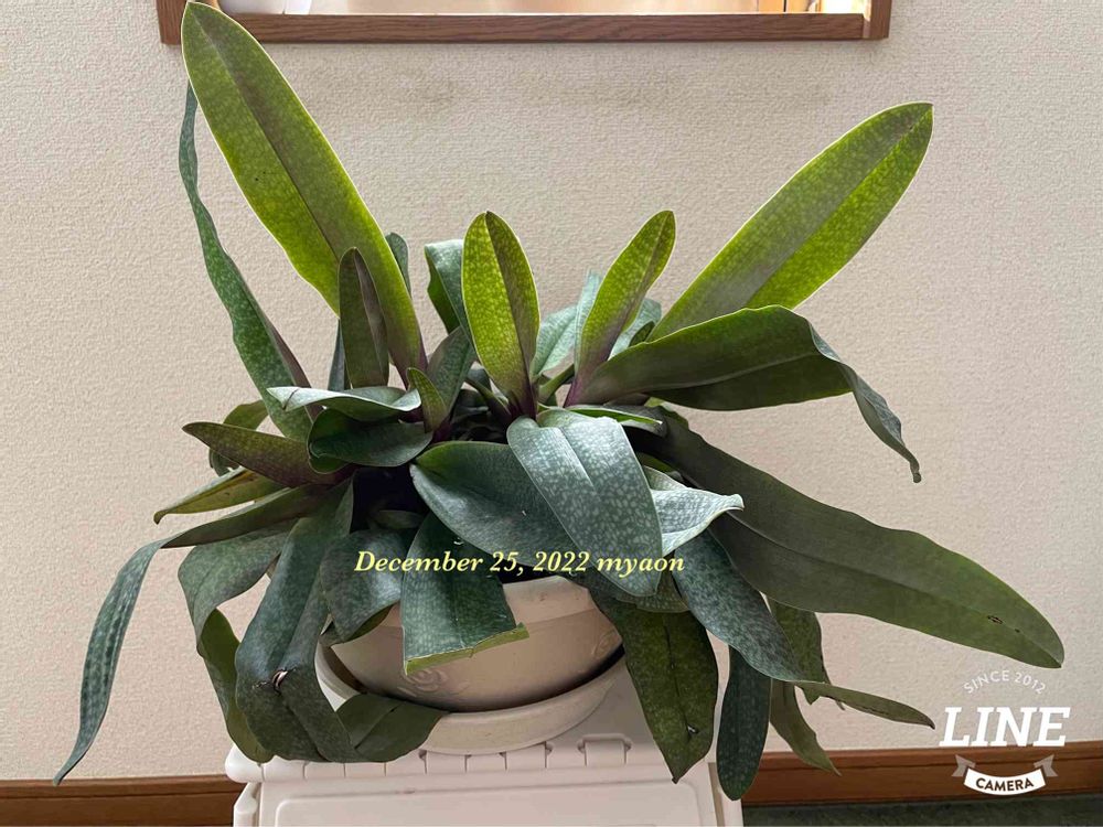 今年の4月ごろ咲いてからずっと部屋で過ごしているリア。真夏以外はLEDライトの光を当てて過ごしています。戸外に置いてあるよりも葉の状態がいいかな?