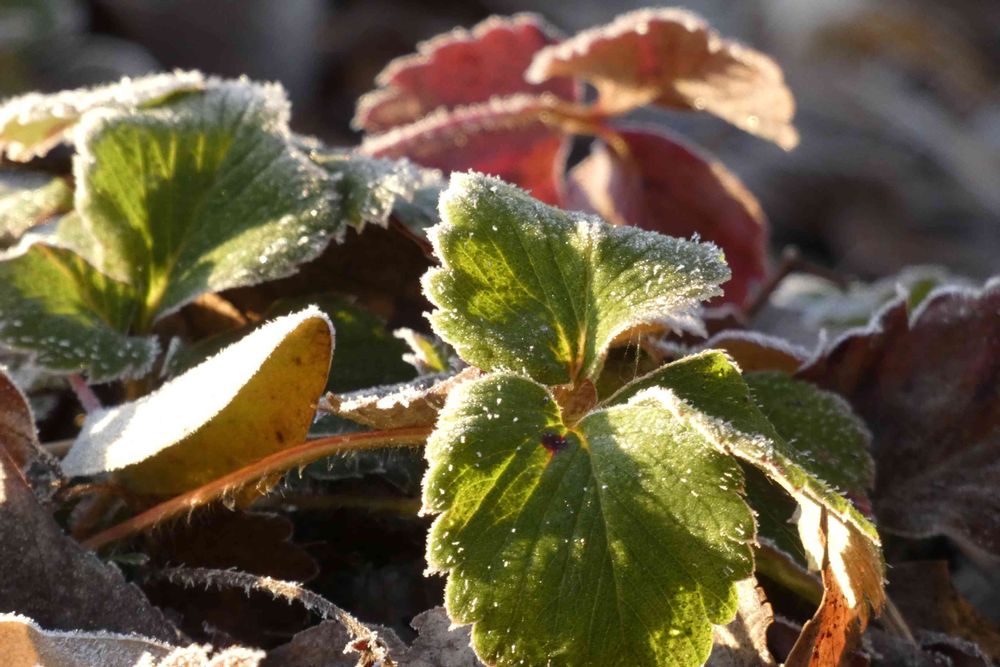 小さな庭,イチゴの葉。,朝の一枚の投稿画像