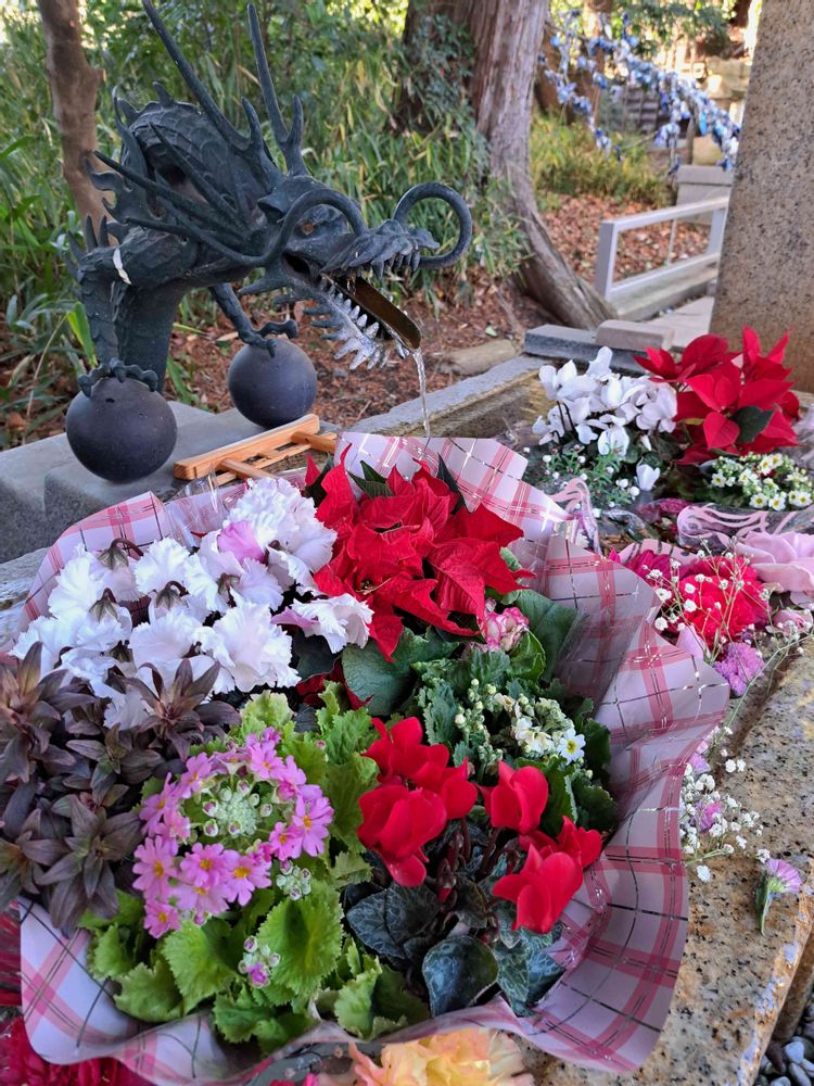 いつもはシンプルな🍁を浮かべたりだったので、豪華花手水にびっくりでした❗