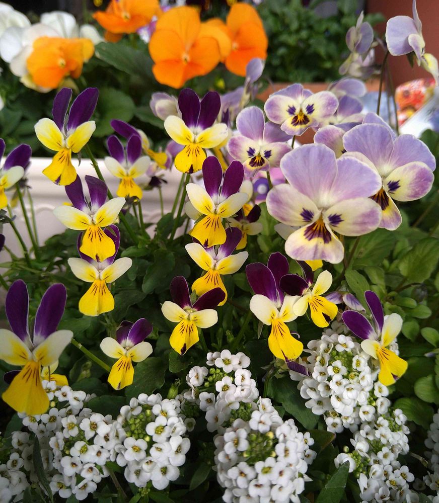 寒い中、寄せ植えのお花達が、咲いてくれています💜💛💜💛
