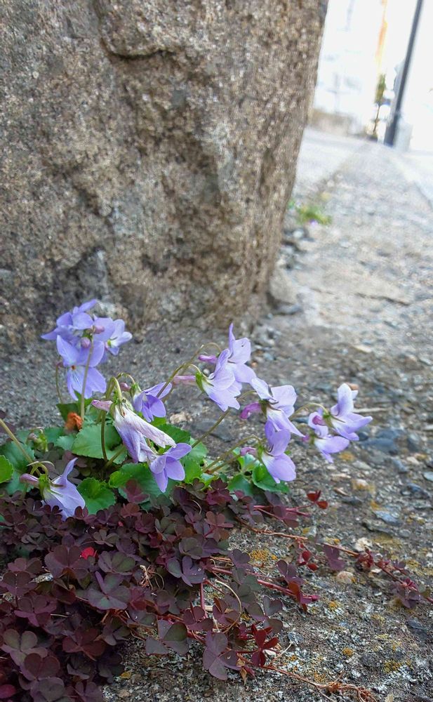 住宅街の片隅に小さな花束のように咲くタチツボスミレ💐