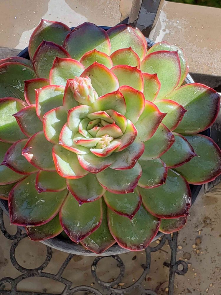 そんな中でも、ひときわ赤いエッジと大きな花芽💗