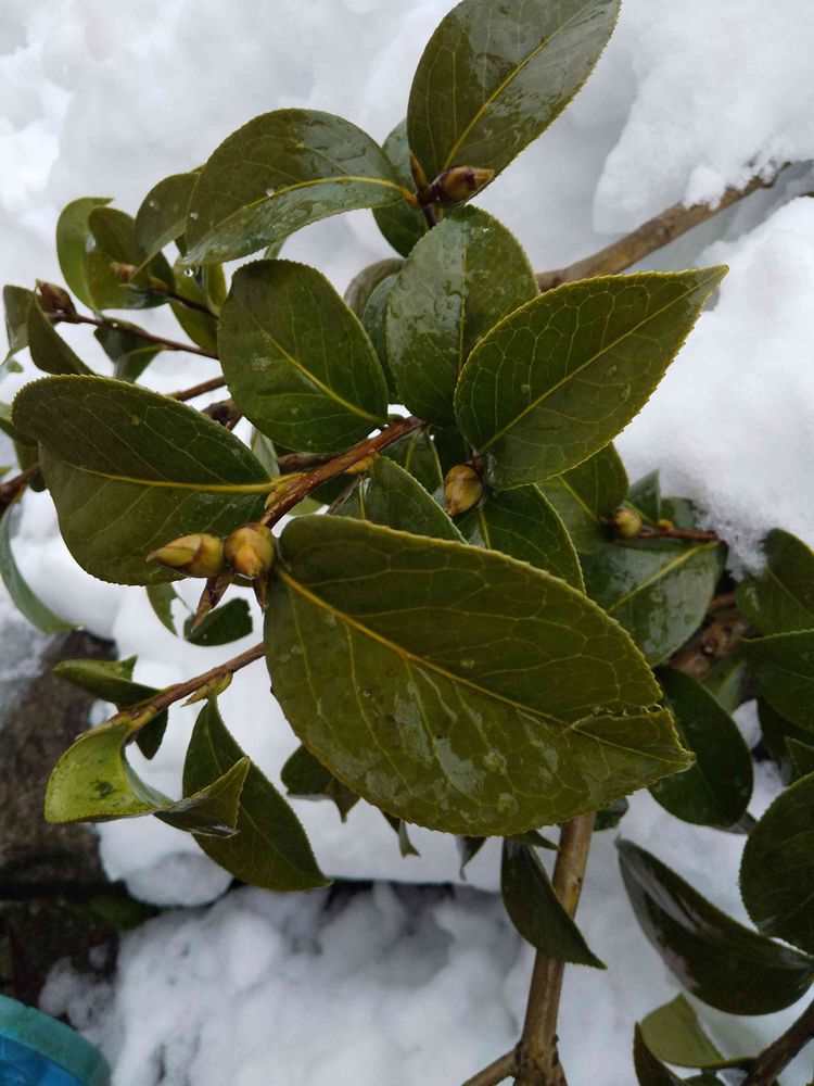 おはようございます❄️⛄春になったら赤い椿さきます 楽しみですね