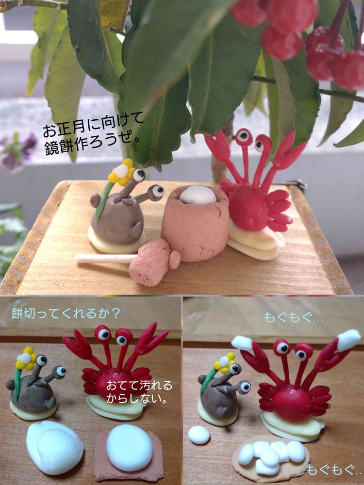 あらあら‥‥‥カニくん、お手伝いはしないのにお餅は食べるのね〜😆😆