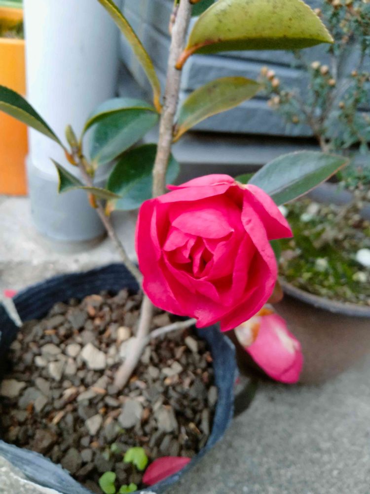 盆栽の山茶花や椿が咲くのは、嬉しさひとしおですね🥰