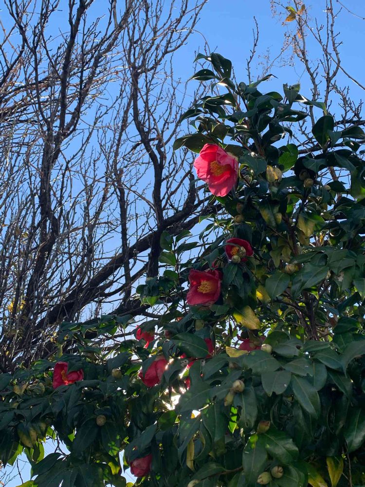 冬晴れの景色に、藪椿の紅色は際立って美しいです。😘