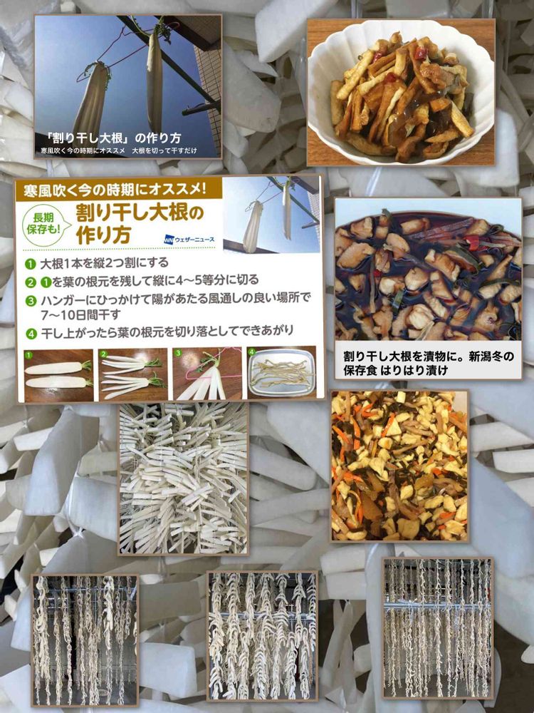 大根は12〜2月頃が旬の時期です。旬に入ると、美味しいものが安く買える傾向にあります。 「1本丸ごとでは食べきれないと思っても、干すと驚くほどカサが減り、保存も効くのでオススメです。 干すのには特別な道具はいらず、針金やプラスチックのハンガーがあればOKです。生の大根より甘みが凝縮されてさらに美味しくなります」(加藤さん)
