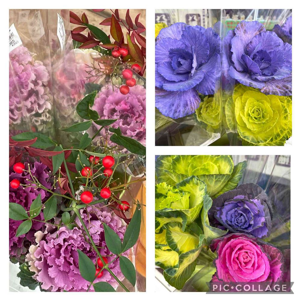 葉牡丹も種類が多く花束の様になっています💐