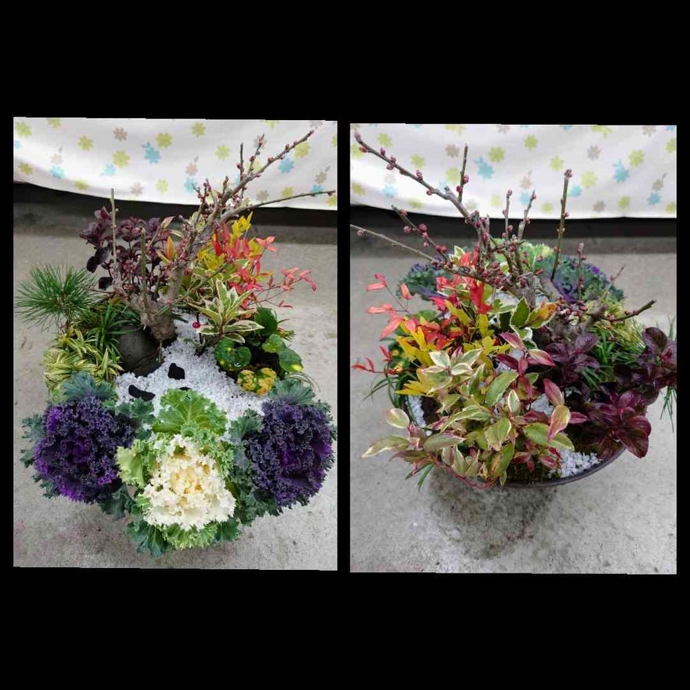 前回からしばらくして作った、松竹梅の庭園風寄せ植え🌿
